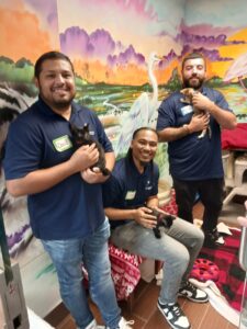 During their recent volunteer day, the team prepared treats, built scratchers for the cattery, and power-washed crates to support the staff and animals in their care. The afternoon ended with play time, where associates met the most well-behaved pups waiting for adoption. One lucky dog found her forever home with our associate Melanie Terrel, who adopted her new pup, Koda!