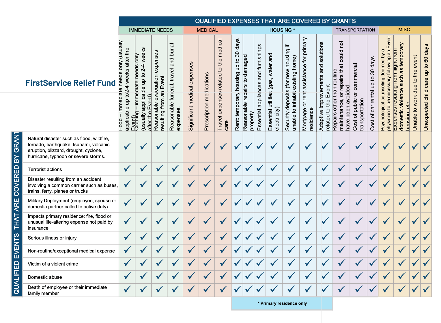 Grants are awarded to eligible team members across FirstService companies, FirstService subsidiaries and their franchises who are facing financial adversities from a hardship Qualified Event.