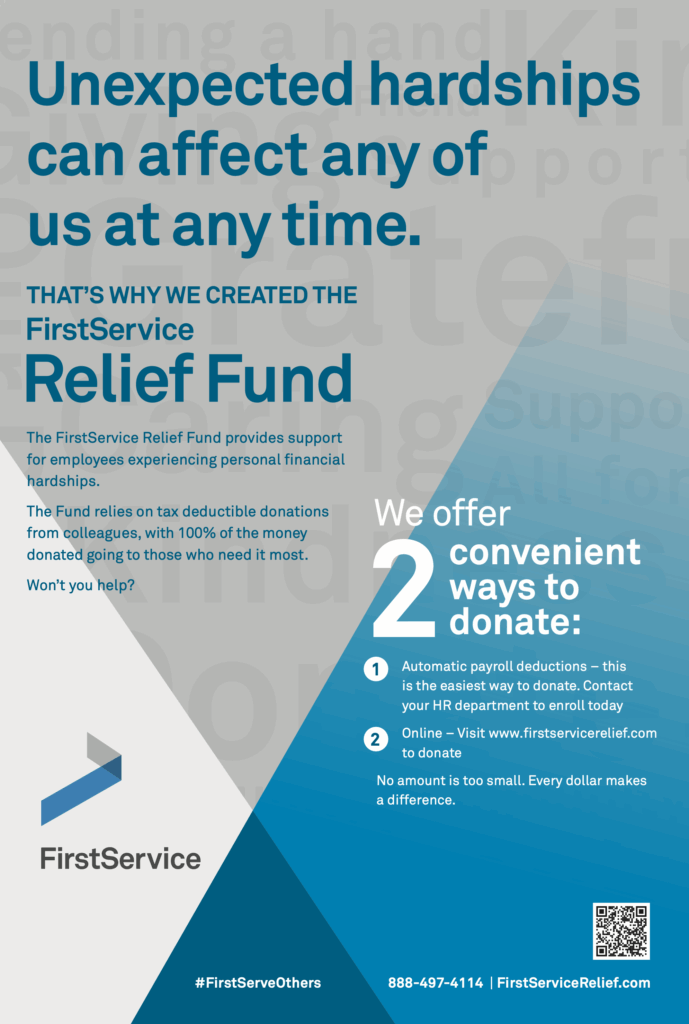 As FirstService’s Summer of Service campaign winds down, we highlight key community initiatives from our North American teams. These include FirstService Residential’s toy drive with CP24 CHUM Christmas Wish, First Onsite’s Sheltering Hope animal aid, California Closets’ “Care Closet” for foster families, and Paul Davis’ ongoing blood donation efforts. We also celebrate FirstService Residential’s South Region HQ achieving WELL Certified™ Gold, the East Region’s “Jolt of Joy” project delivering 700 cards to seniors, and feature Leukemia Awareness Month with ways to support lifesaving research. These activities demonstrate our commitment to compassion, collaboration, and service.